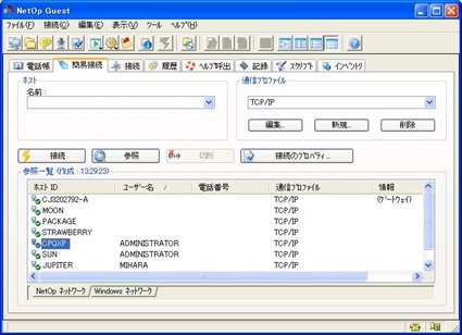 - 社外端末の場合:Netop WebConnectを使用して接続します。Netop WebConnectは、インターネットを経由して、離れた地点の端末に接続する橋渡しをします。